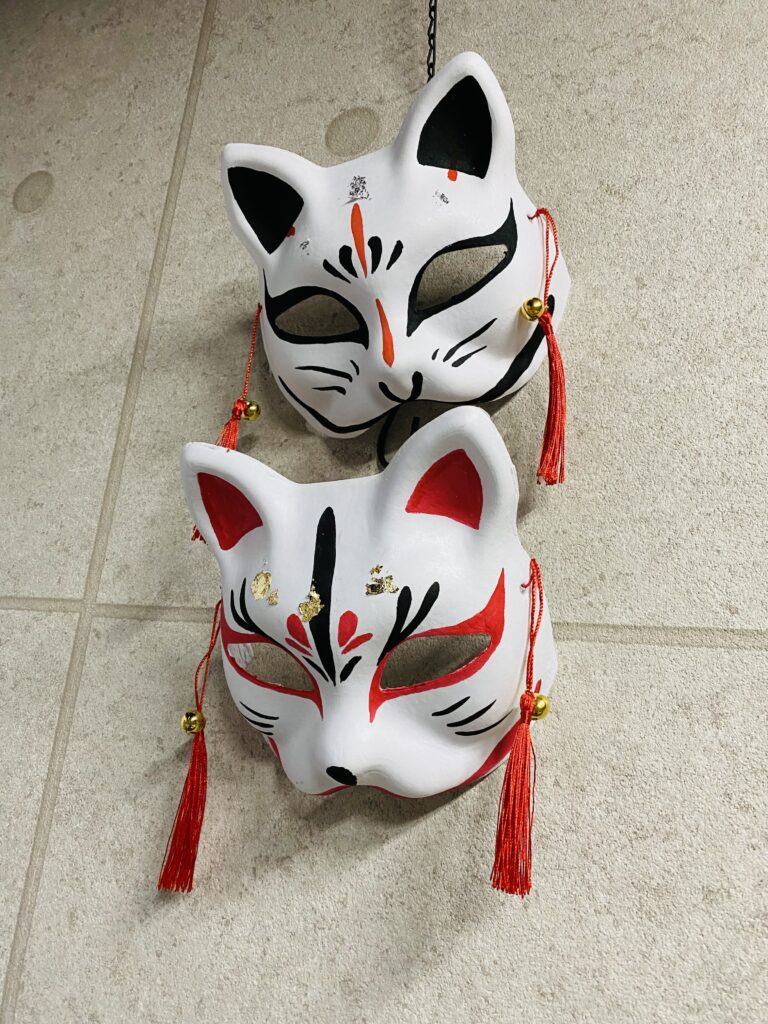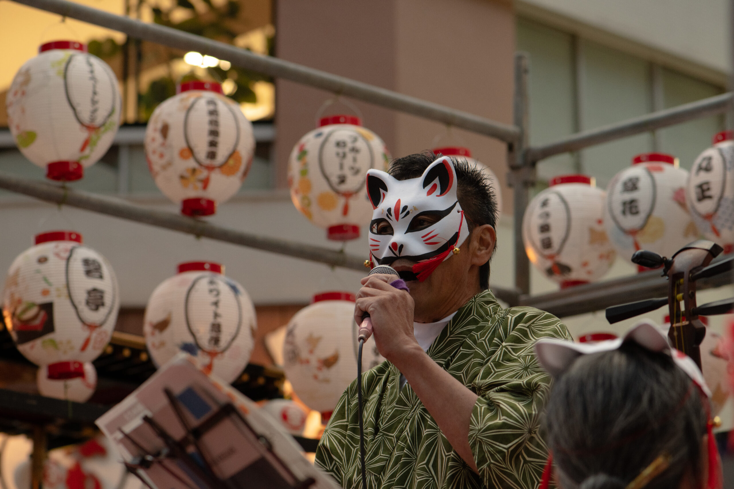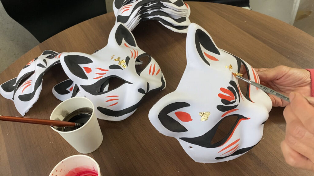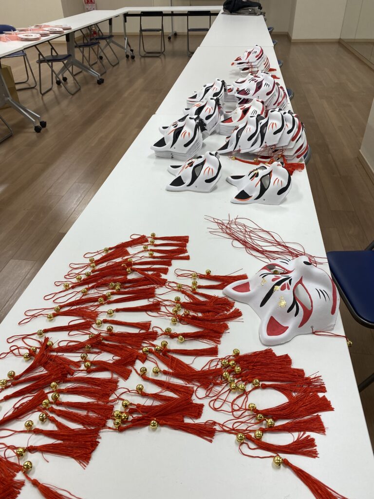 御園座商店街様のオリジナルキャラクター作成しました。商店街のキャラクターがお店の特徴を紹介している提灯の製作。 お面も手描きで、100枚作成しました。